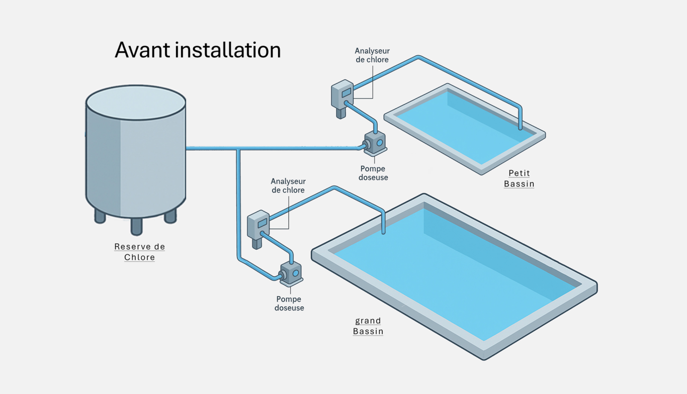 Rien ne change ensuite: les analyseurs de chlore ne sont pas remplacés, ils pilotent les pompes doseuses pour injecter le chlore, exactement comme avant.
