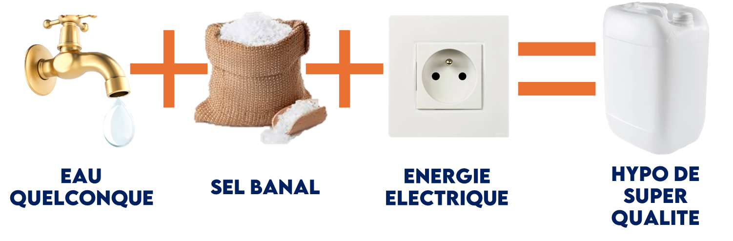 Le chlore est produit simplement à partir d'eau, de sel, d'énergie.